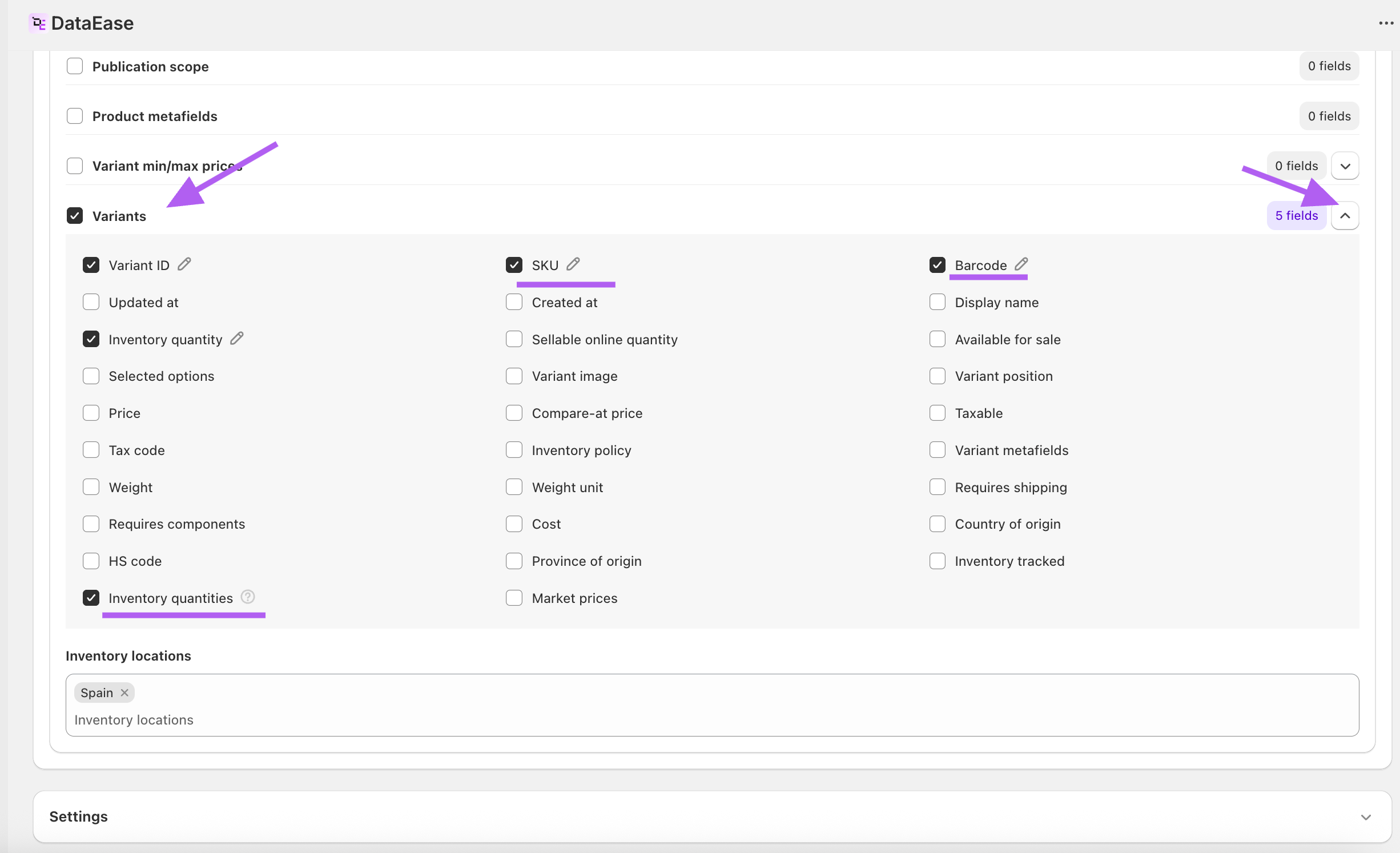 - SKU / Barcode (select as needed).